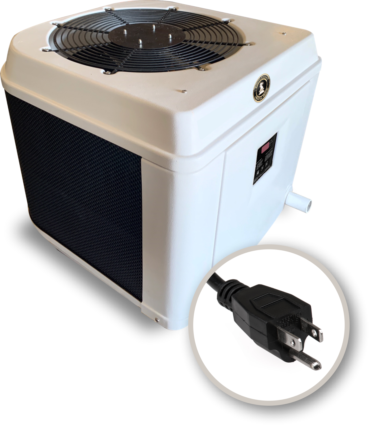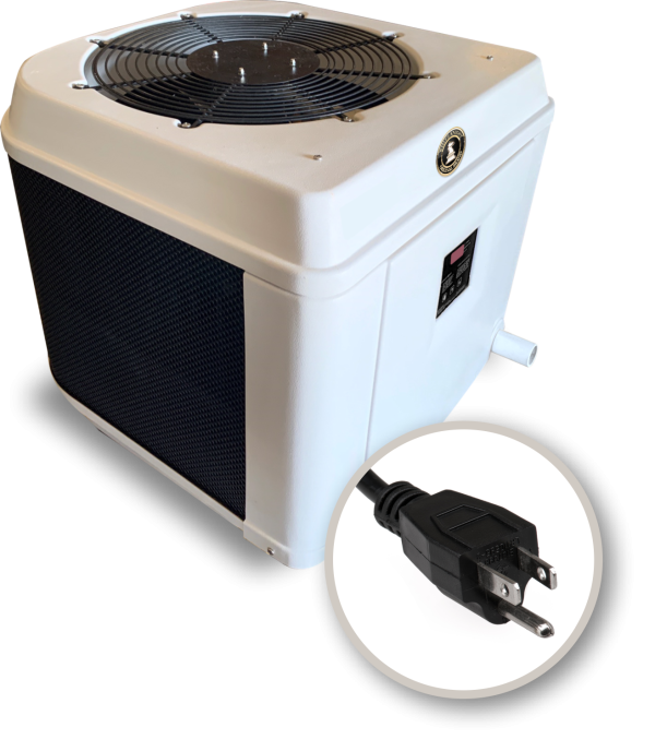 This heat pump is suitable for above ground pools up to 15×30 ovals, or 24 round. Recommended that these larger pools use a solar blanket.